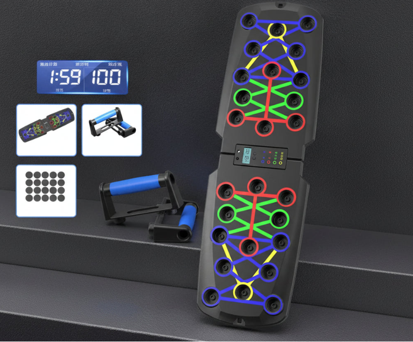 Este tablero te dice exactamente dónde colocar las manos y qué músculo estás activando en cada repetición. Sin pensar. Sin improvisar. Solo ejecutar bien.